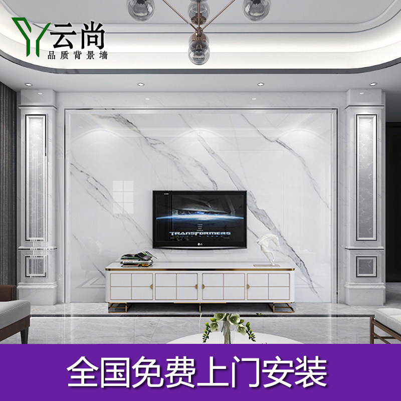 客厅轻奢石材背景墙现代简约大理石电视墙瓷砖大板影视墙微晶石热门设计联盟服务商