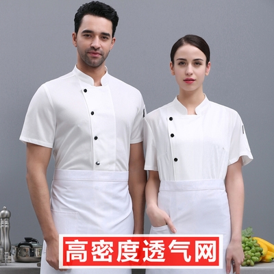 新品厨师w工作服男短袖透气网薄款饭店餐饮后厨厨师服夏季黑色衣热门设计联盟服务商